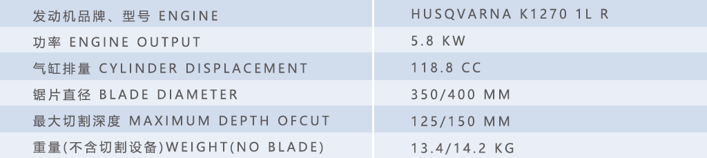 AC1270 消防专业无齿锯,采用原装进口瑞典 HusqvarnaK1270lR型发动机,针对消防应用开发专业辅助配件,具备切割精度高、切割速度快的特点。独特的铝镁合金锯片罩具有重量轻,高功率重量比,切割金属/混凝土等物料后无残留的特点,无级调整,更容易改变切割位置,延长锯片罩使用寿命。配有消防专用背带设计,方便携带,让使用过程中更加省力,运输便捷。