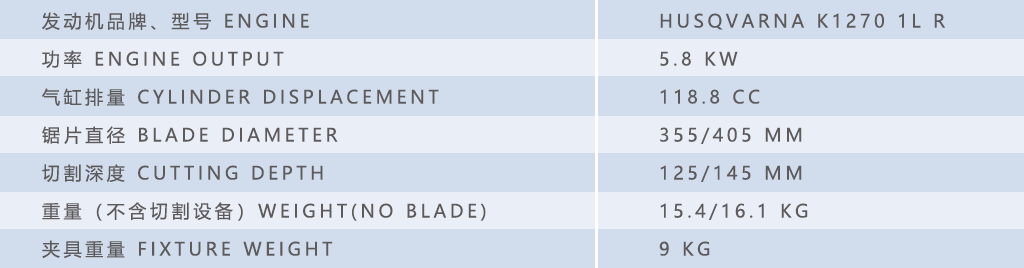 AR 1270 Rail 型钢轨专用切割机,采用瑞典Husqvarna K1270lR 型原装发动机,配以我公司针对铁路应用所开发的大摆臂夹轨装置(三点可调),具有切割精度高、切割速度快、可以左右切割(翻锯)的特点。独特的铝镁合金锯片罩,具有重量轻、切割钢轨后无铁屑残留的特点,延长了锯片罩的使用寿命。下沉式支臂减少甚至避免发动机热变形对切削精度的影响。具有防脱落安全连锁装置和防脱钩,切削更加安全。背带系统设计,让使用者搬运机器时更方便省力。